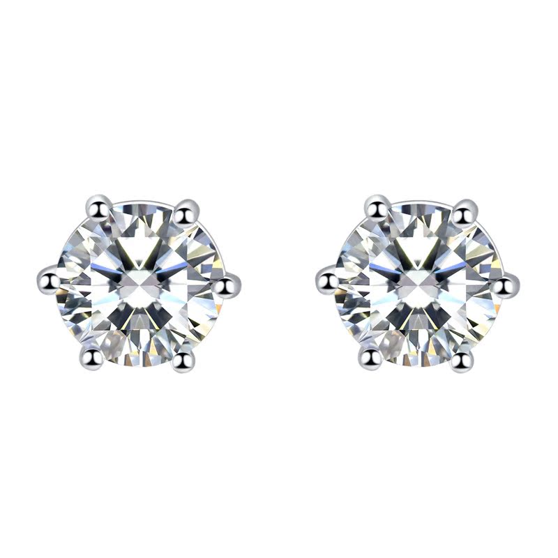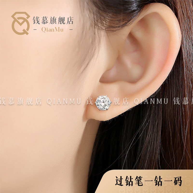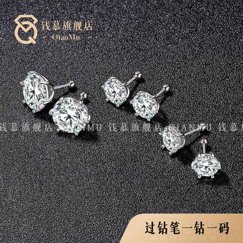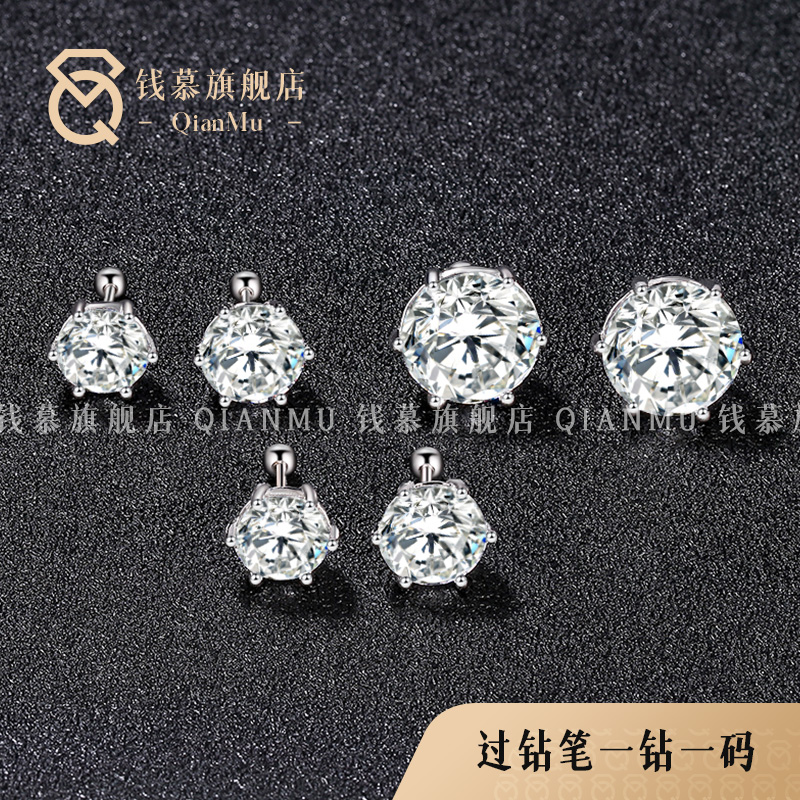 Luxurious Mossang stone earring with six paws minimalist single drill ear pin 80 points 2 carat 50 screw ear pendant pure silver niche