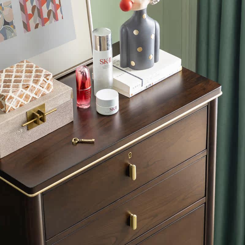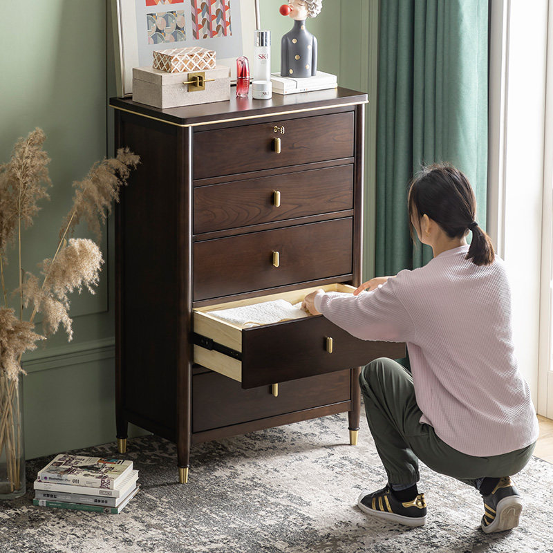 And year Mejia full solid wood five bucket cabinet with lock retro containing cabinet American light and luxurious bedroom multifunctional furniture closet