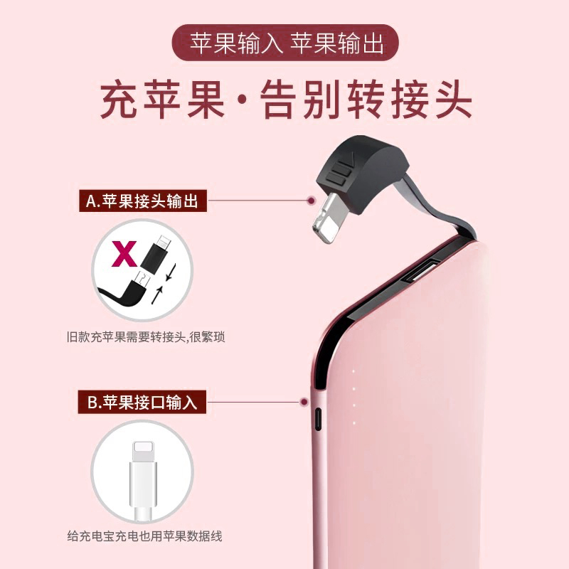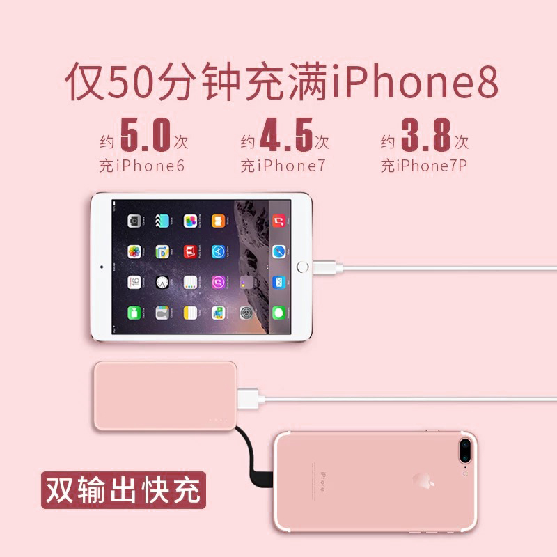 Apple dedicated mobile charging with its own line integrated ultra-thin and small portable x large capacity 10000 mAh 8 mobile phone fast charging 11 girls 6s creative punch 7 action power gift logo custom