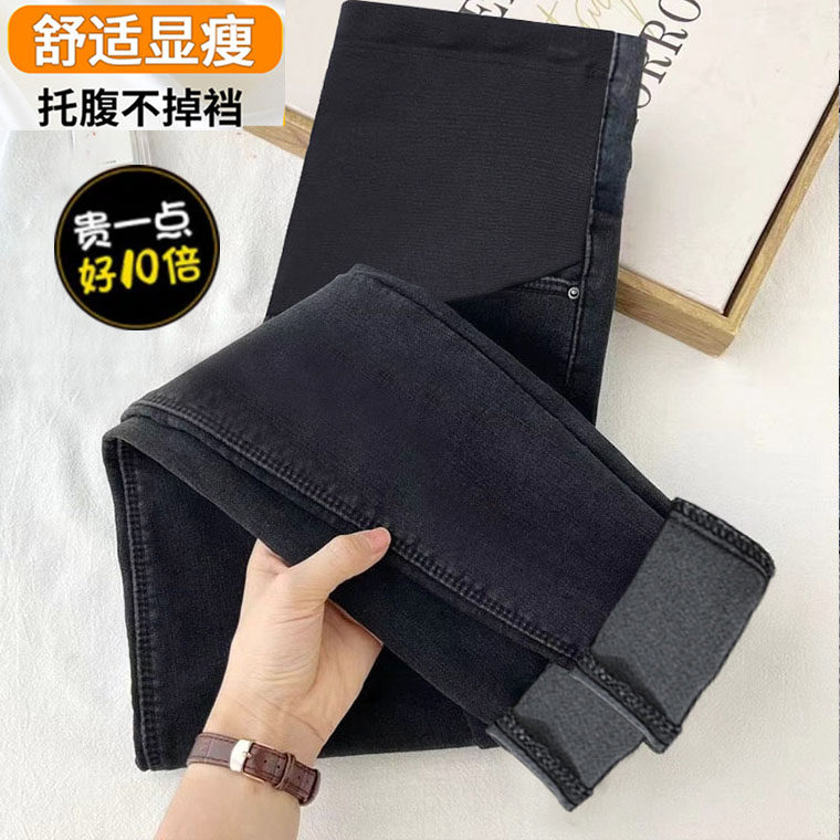 Pregnant woman pants spring and autumn outside wearing denim smoke pipe pants small sub 90% gestation early spring dress lady 2022 new