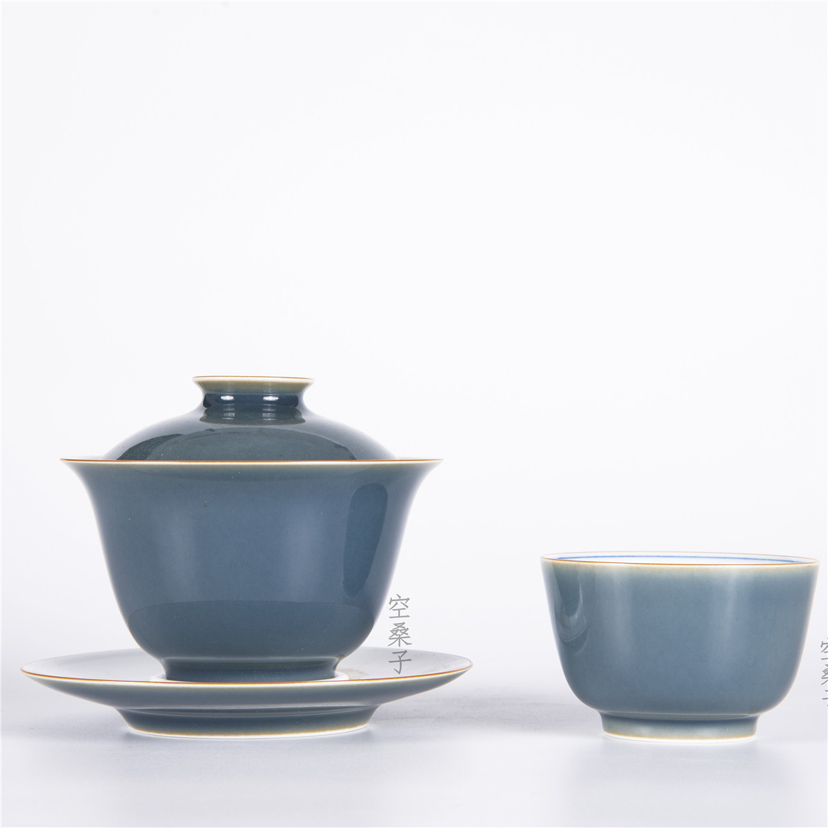 One Cover Two Cups Pure Handmade Color Glazed Tea Set Set Up for Qingzzing Green Cover Bowl Single Cup Set Group Jingdezhen Ceramics