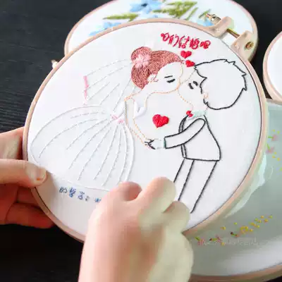 diy handmade embroidery material bag fabric embroidery retro Jiangnan Su embroidery wool felt pile flower needle printing base cloth