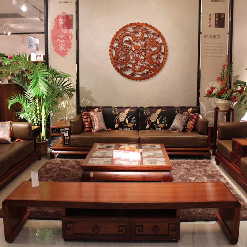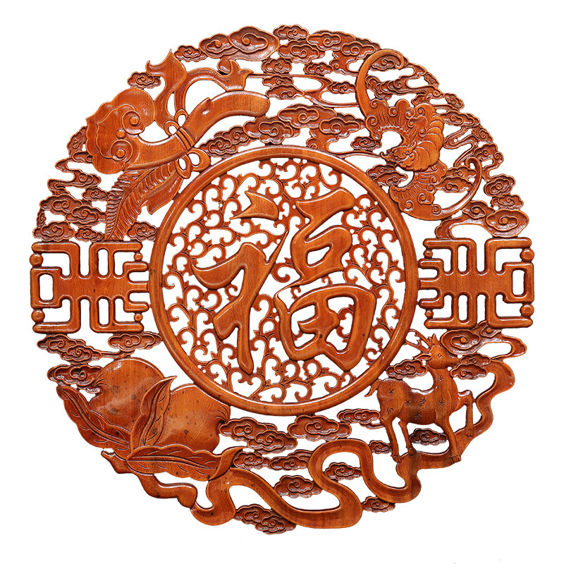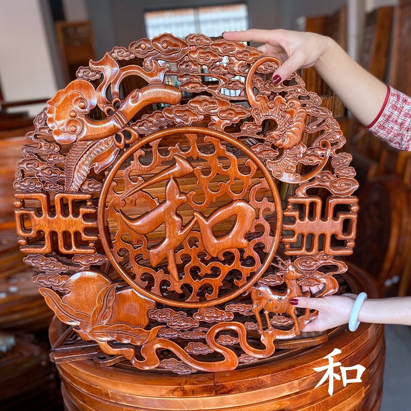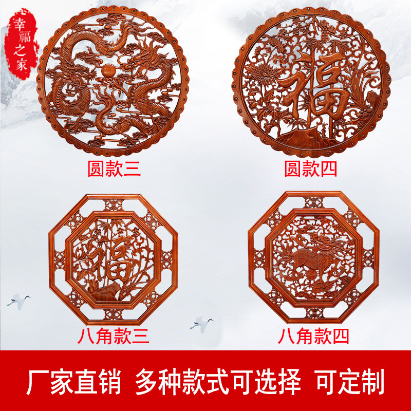 Dongyang wood carving solid wood antique round pendant Chinese decoration lampshade carving lattice octagonal decorative ornaments custom