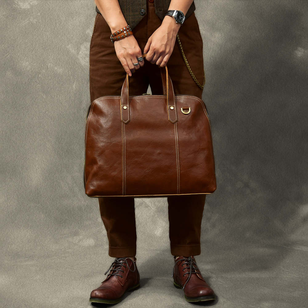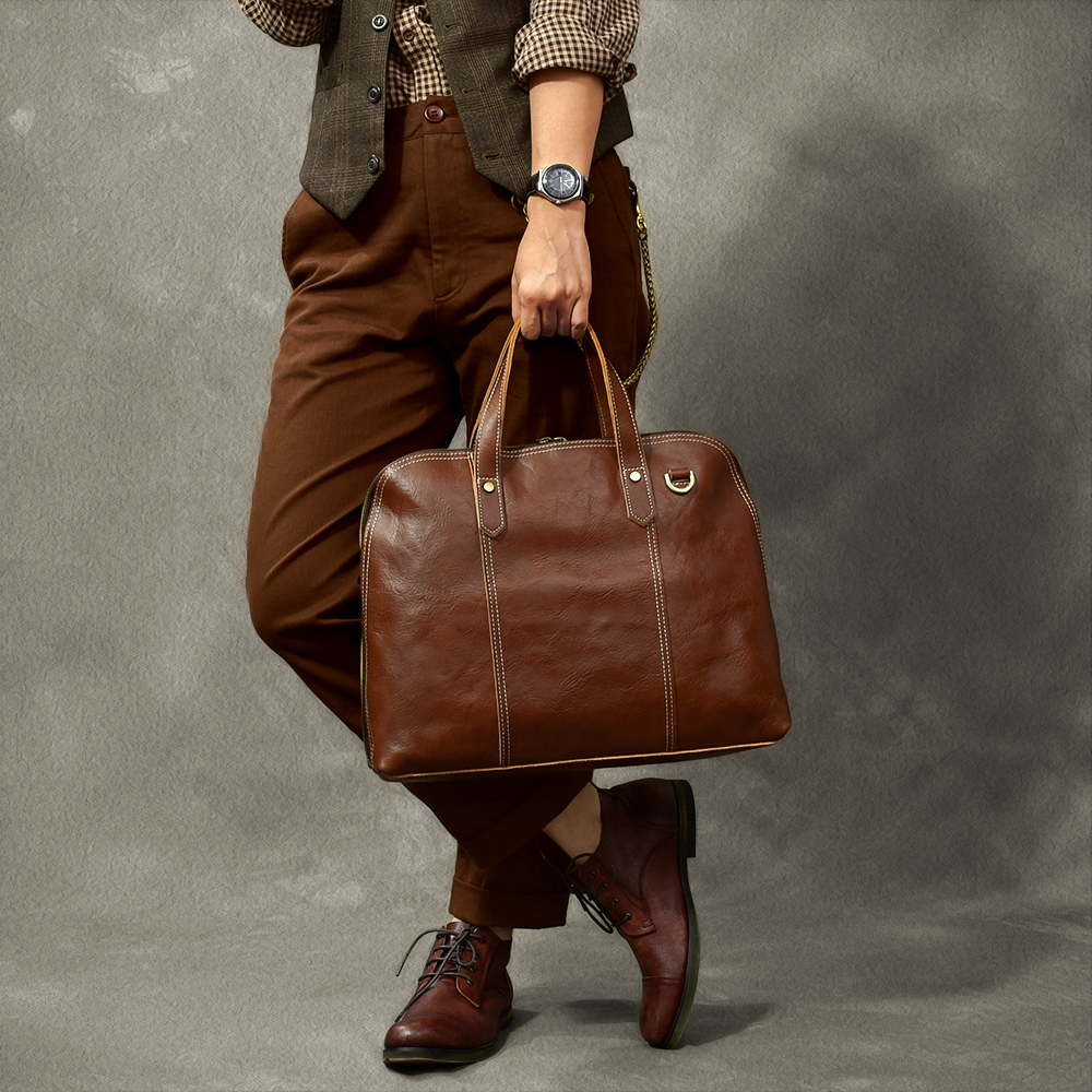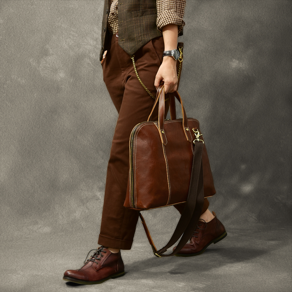 24th Street Cowhide Japanese Vintage Hipster City Commuter Men's Handbag Genuine Leather Business Shoulder Briefcase