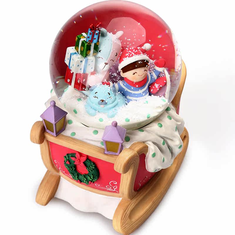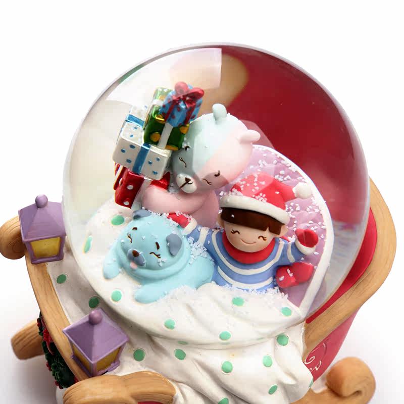 Jarll music box music box Christmas sleigh crystal ball decorations with snowflakes for girls and children cute gifts