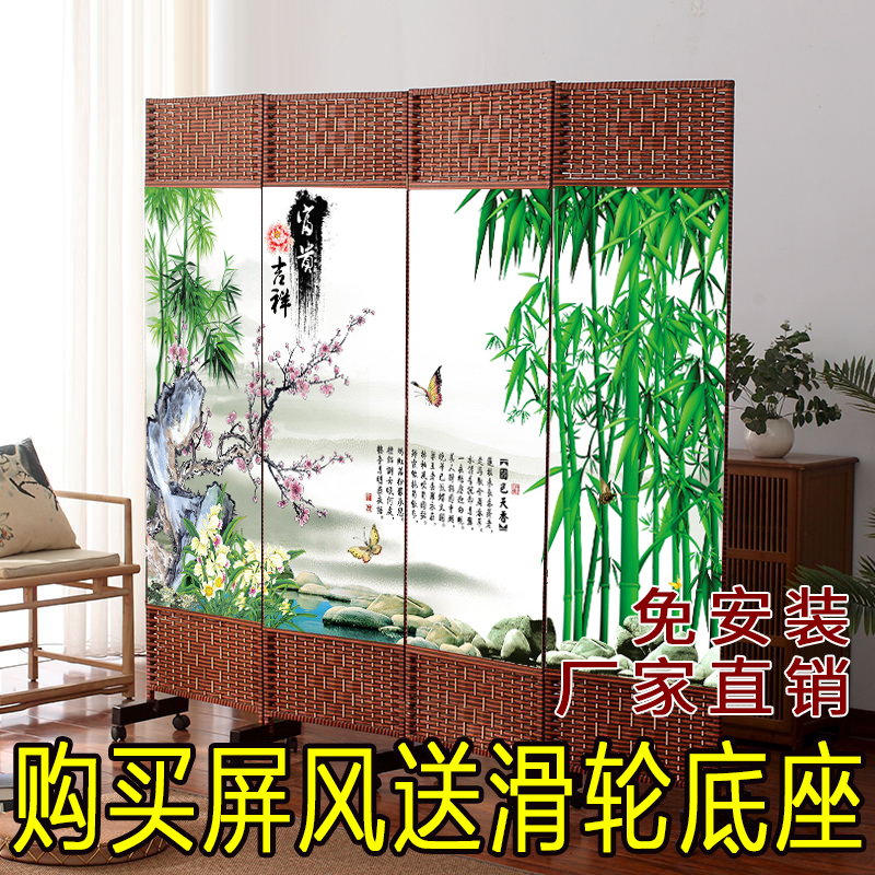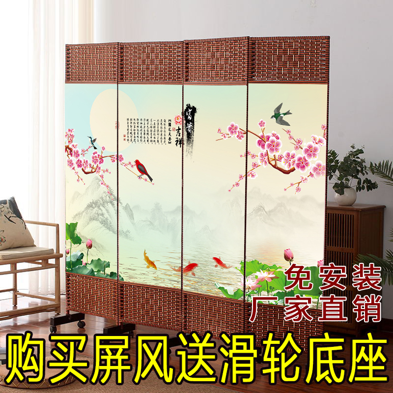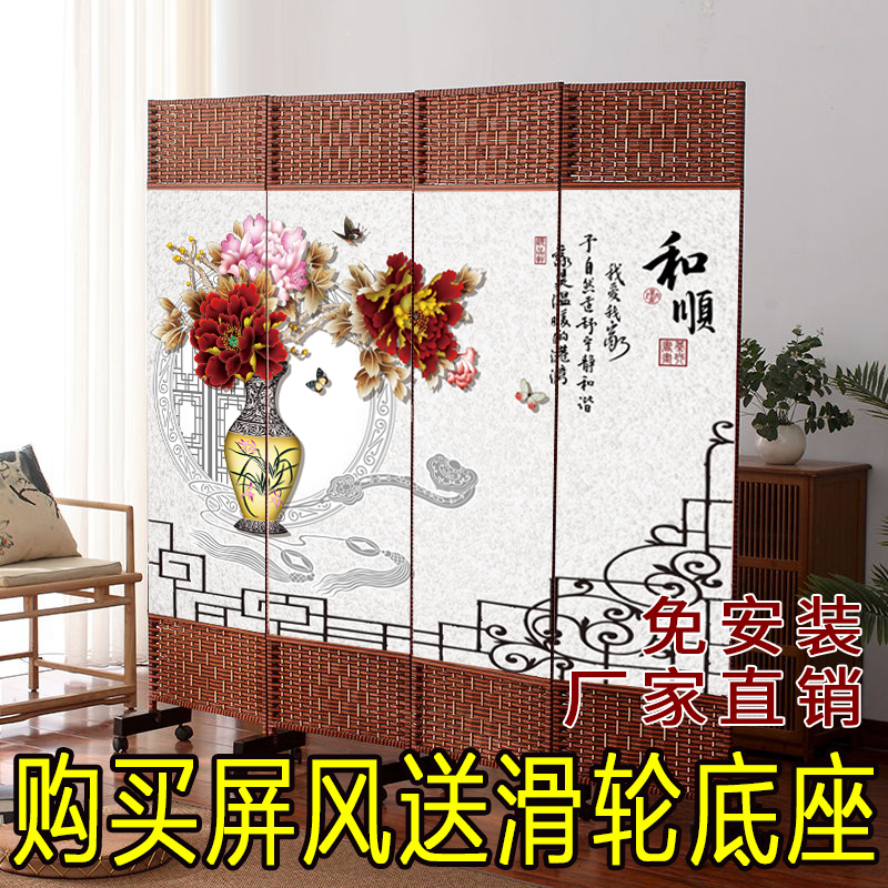 Chinese Cloth Art Screen Partition Wall Living Room Bedroom Folding Screen Simple modern folding mobile Easy Economy Type of barrier