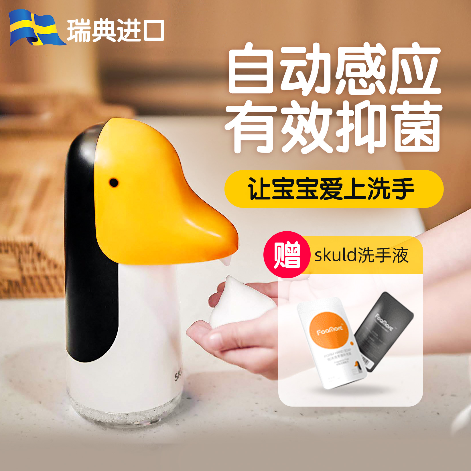 skuld hand washing children's automatic induction foam machine liquid dispenser Smart home baby cleaning penguin hand washing machine