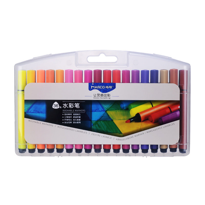 Marco Water Color Pen 24 Color Triangle Coarse rod 36 Color washable watercolor pen 4630 washable 12 color watercolor pen paintbrush Colour pen Children graffiti painting pen 4630 Colour pen suit