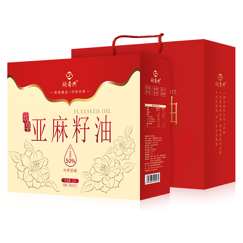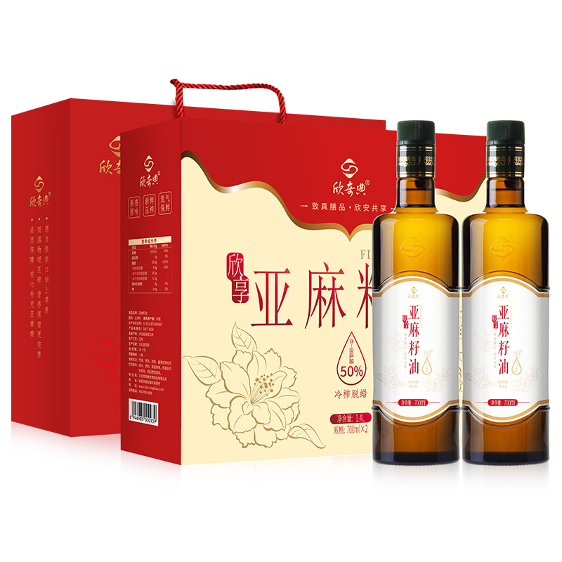 Xin Qi Dian Flaxseed Oil gift box First grade cold pressed edible oil Vegetable oil Xinxiang 700ml*2