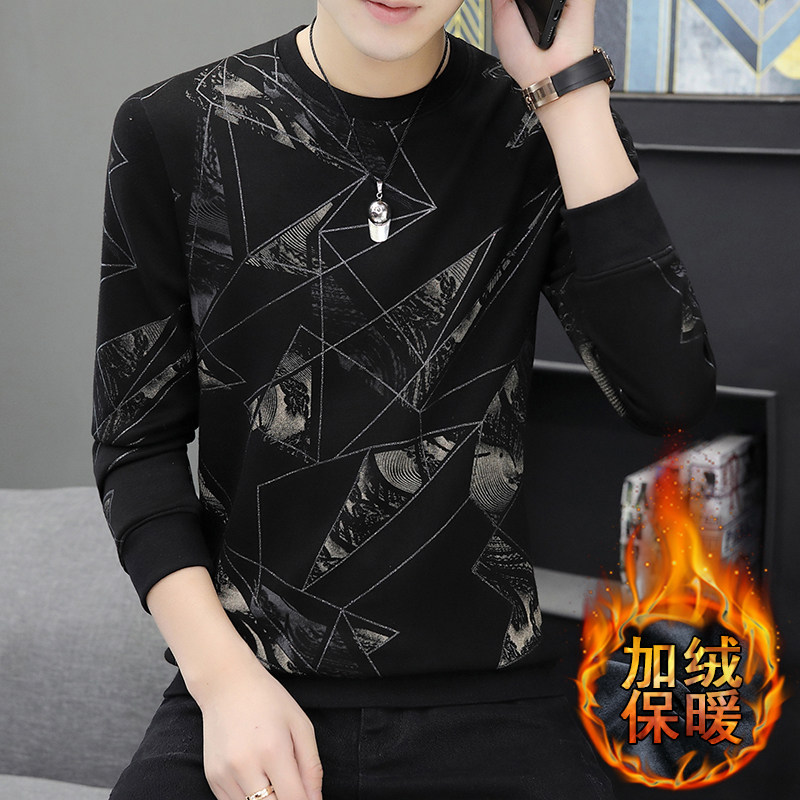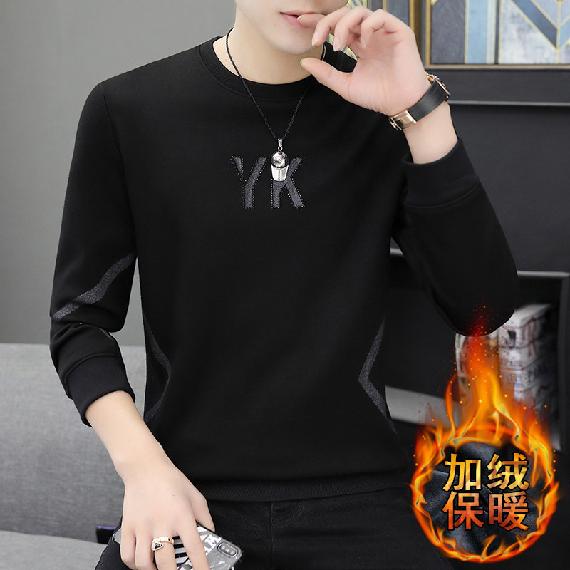 Korean version of the trendy sweater men plus velvet thickened round neck youth warm long-sleeved t-shirt trend Korean version of the bottoming shirt for men