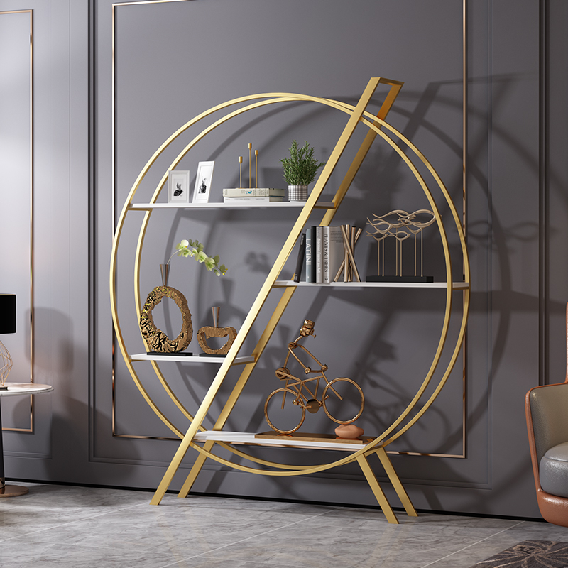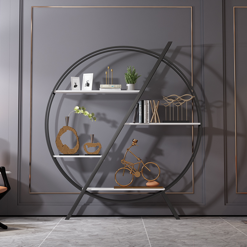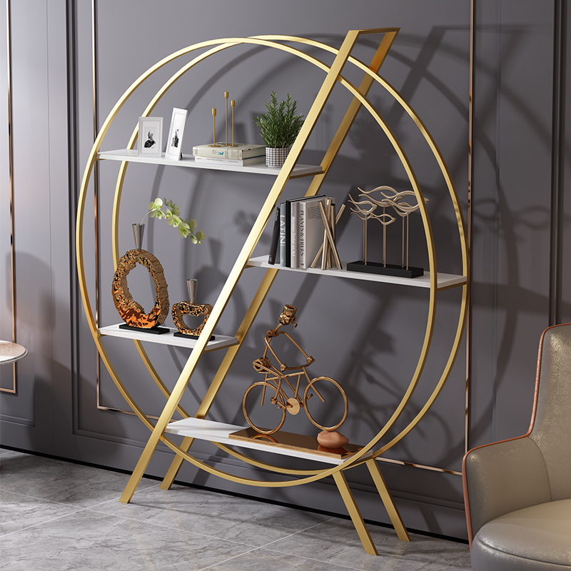 Nordic display rack round shelf floor-to-ceiling bookshelf living room office decoration rack wrought iron light luxury window ins