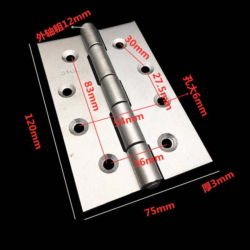 316L 5 inch stainless steel marine hinge anti-corrosive seawater acid proof mechanical equipment hinge 120 * 75 * 3mm