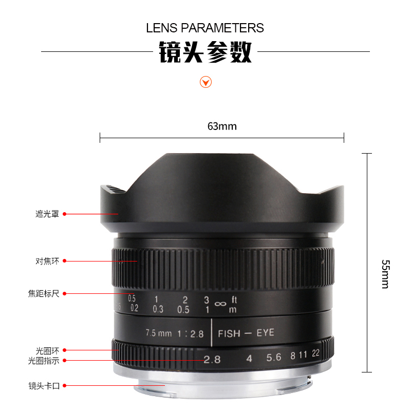 Seven craftsmen 7 5mm f2 8 (micro single eye camera manual lens) ultra wide angle fish eye micro suitable for Fuji M43 Half painting Sony E bayonet L Nikon lens No great aperture