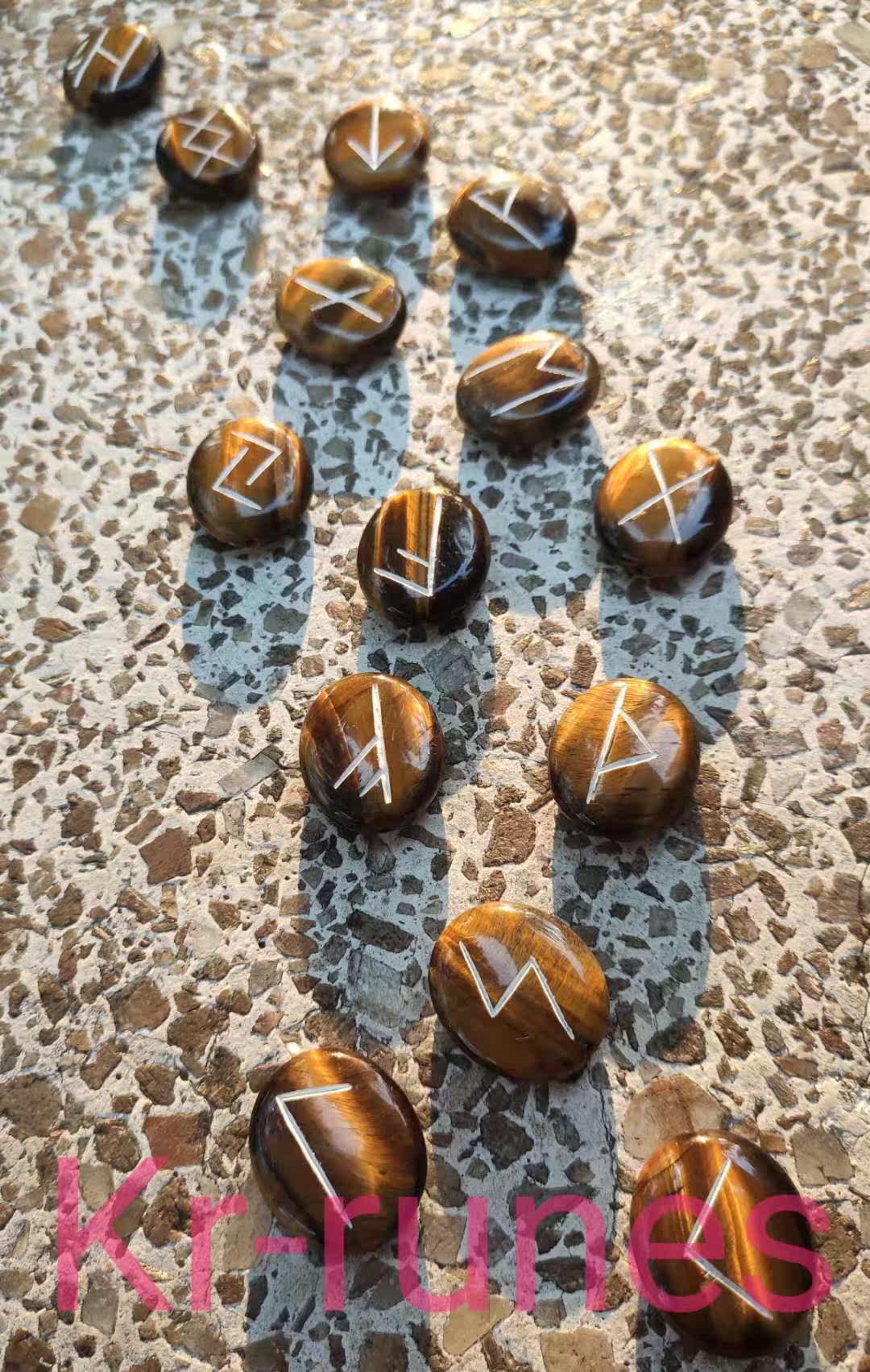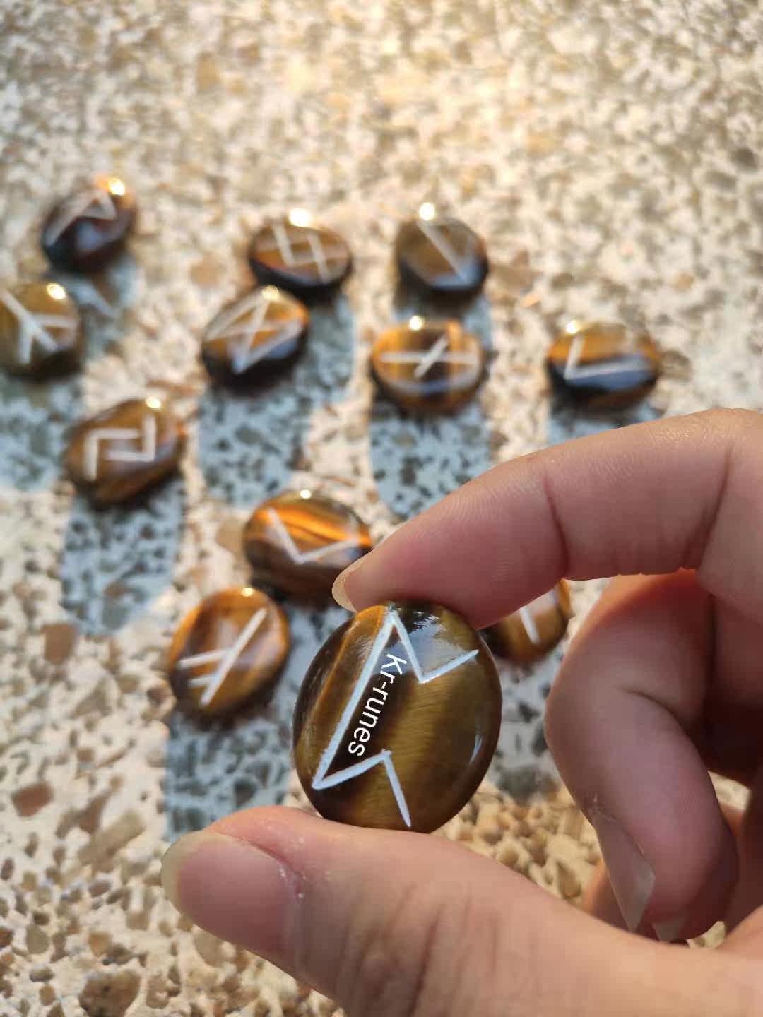 Touch Wood-natural wood fossil yellow tiger eye crystal luhn stone such as Niishi Nordic letters