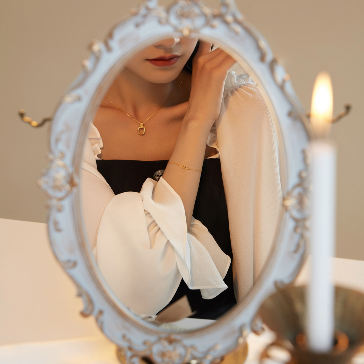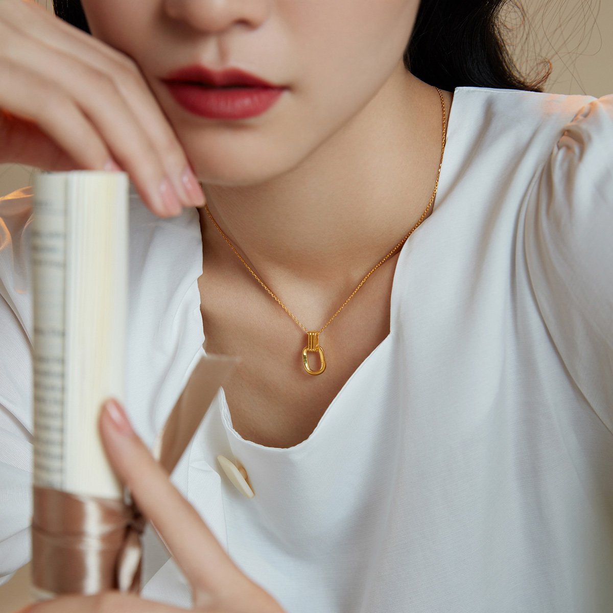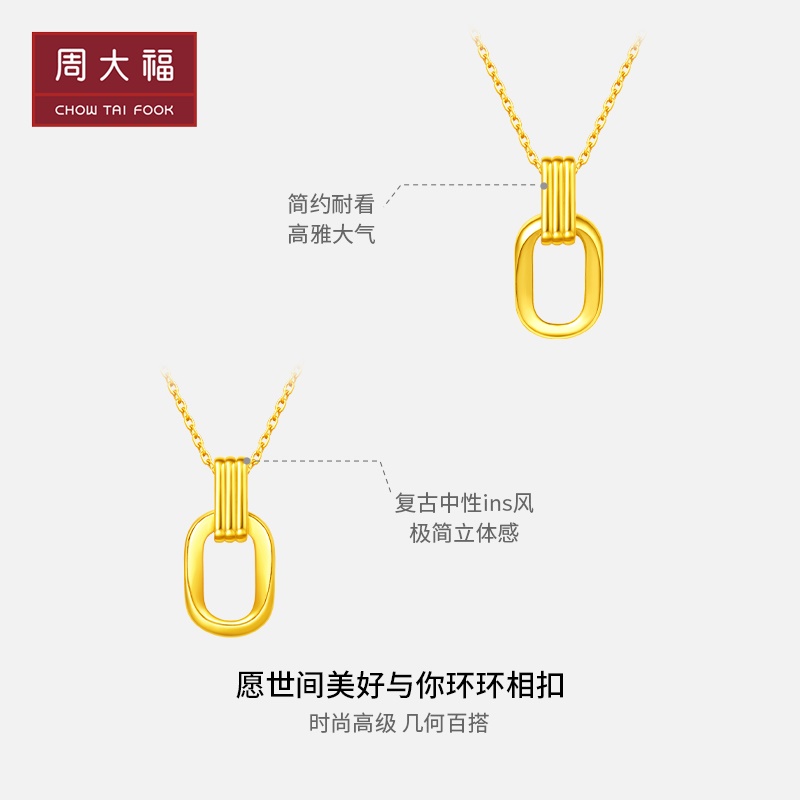 Chow Tai Fook ing series vintage style geometric small hanging ring gold necklace pendant priced F217317 selection