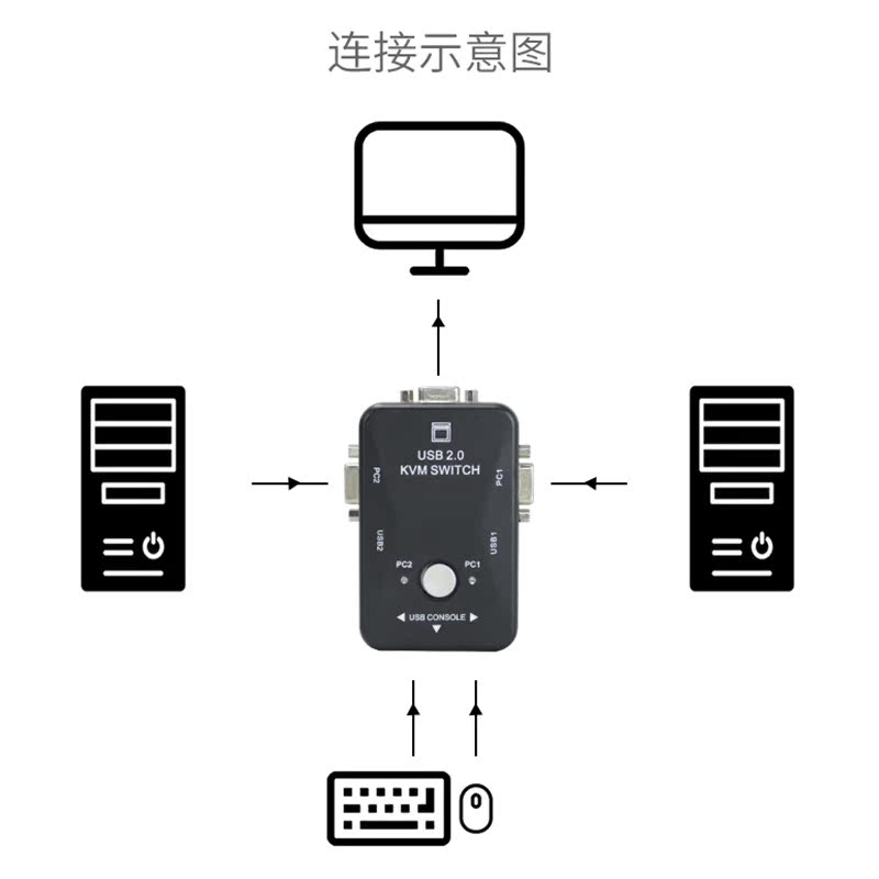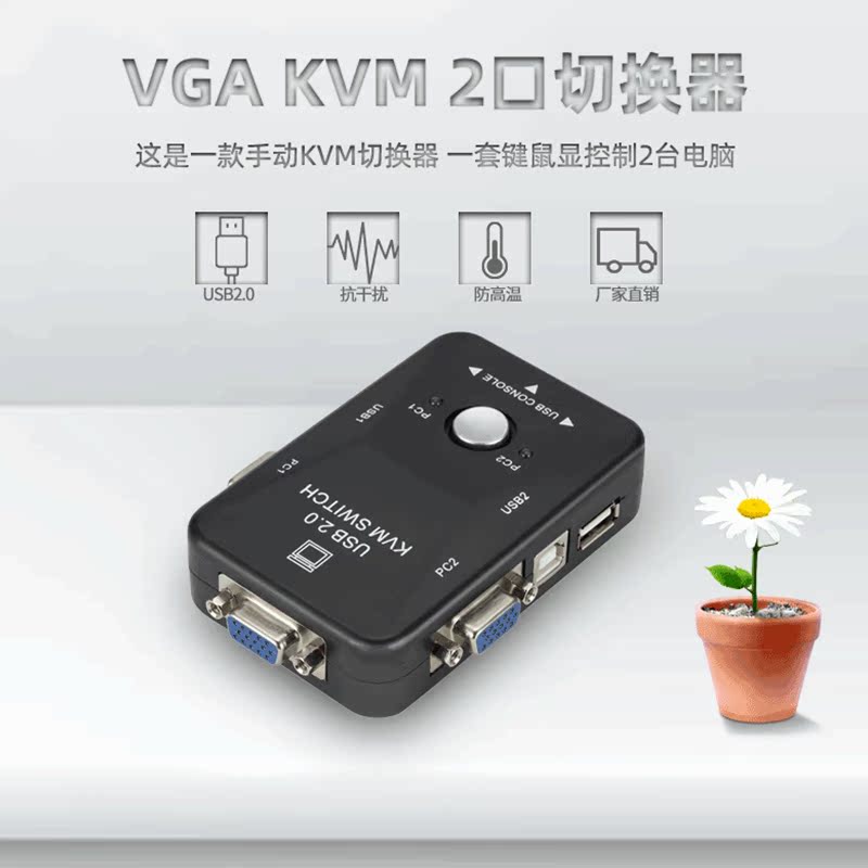 BOWU KVM Switch 2 ports VGA2 in 1 out Computer screen mouse keyboard sharer Mouse key screen sharer USB HD VGA Computer keyboard mouse host sharer 21UA