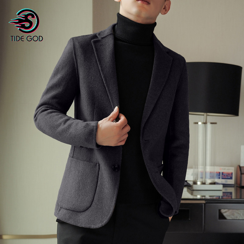 Casual suit men's double-sided woolen woolen suit Korean version slim autumn and winter one-piece cashmere jacket top trendy