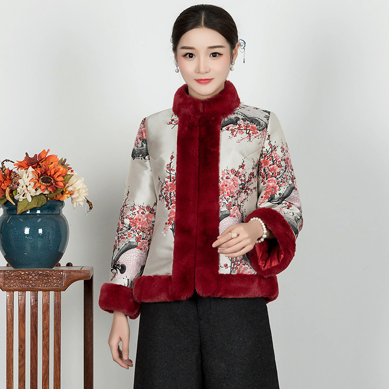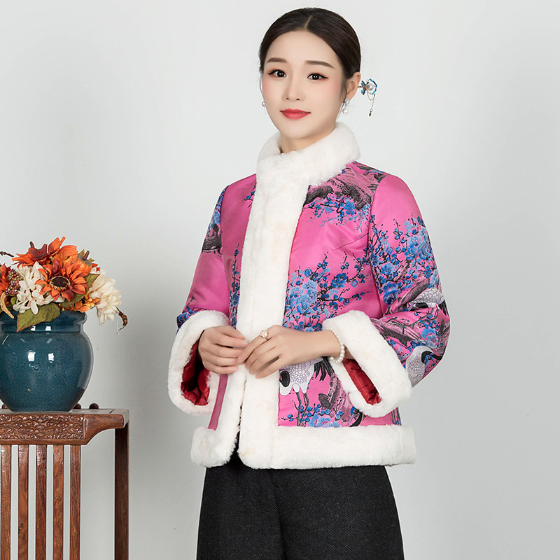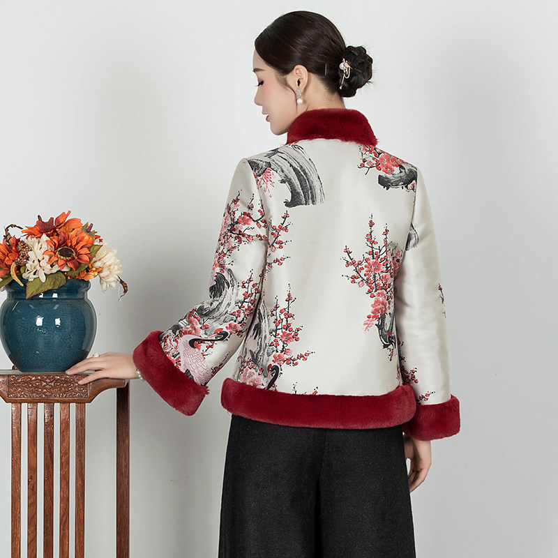 Chinese classic cheongsam jacket autumn and winter cotton-padded jacket Chinese-style quilted improved double-breasted wool collar Hanfu Chinese style small cotton-padded jacket