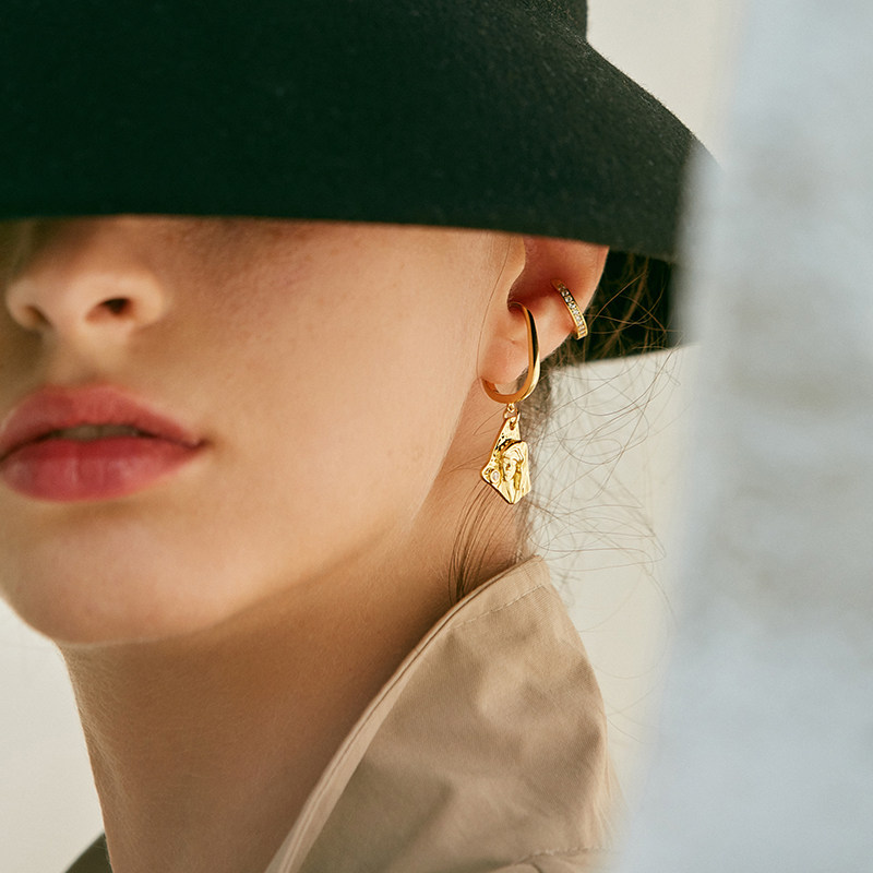 pn ear clip type without ear-acupuncture-style pure silver female retro ear decoration without pain and earrings high-grade ear bone ear hanging