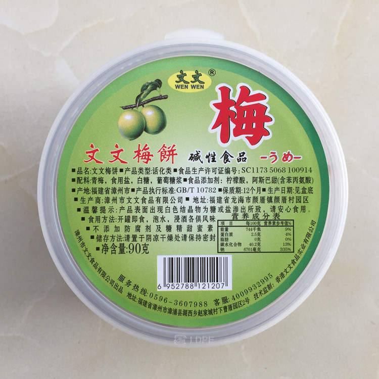 Wenwen plum cake Japanese seedless plum fruit dried acid and alkaline food words Pregnant women plum cake meat candied snacks 90g2 boxes