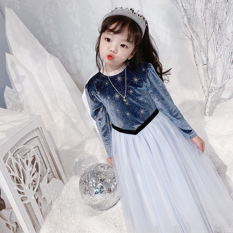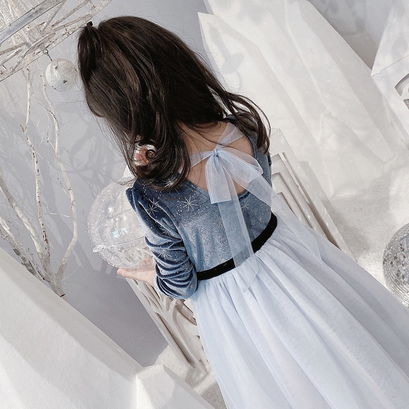 Frozen Aisha princess skirt fluffy girl velvet dress children's clothing Western style Aisha children's autumn and winter clothes