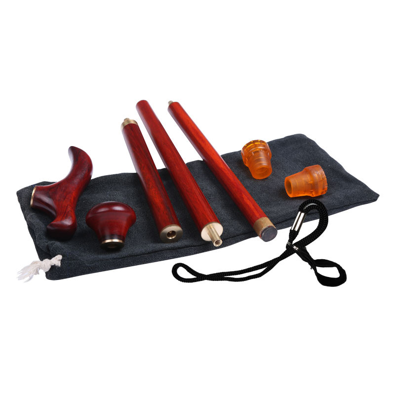 Small leaf red sandalwood redwood cane Old man non-slip cane Solid wood round head civilization stick Sandalwood three-section cane mountaineering stick