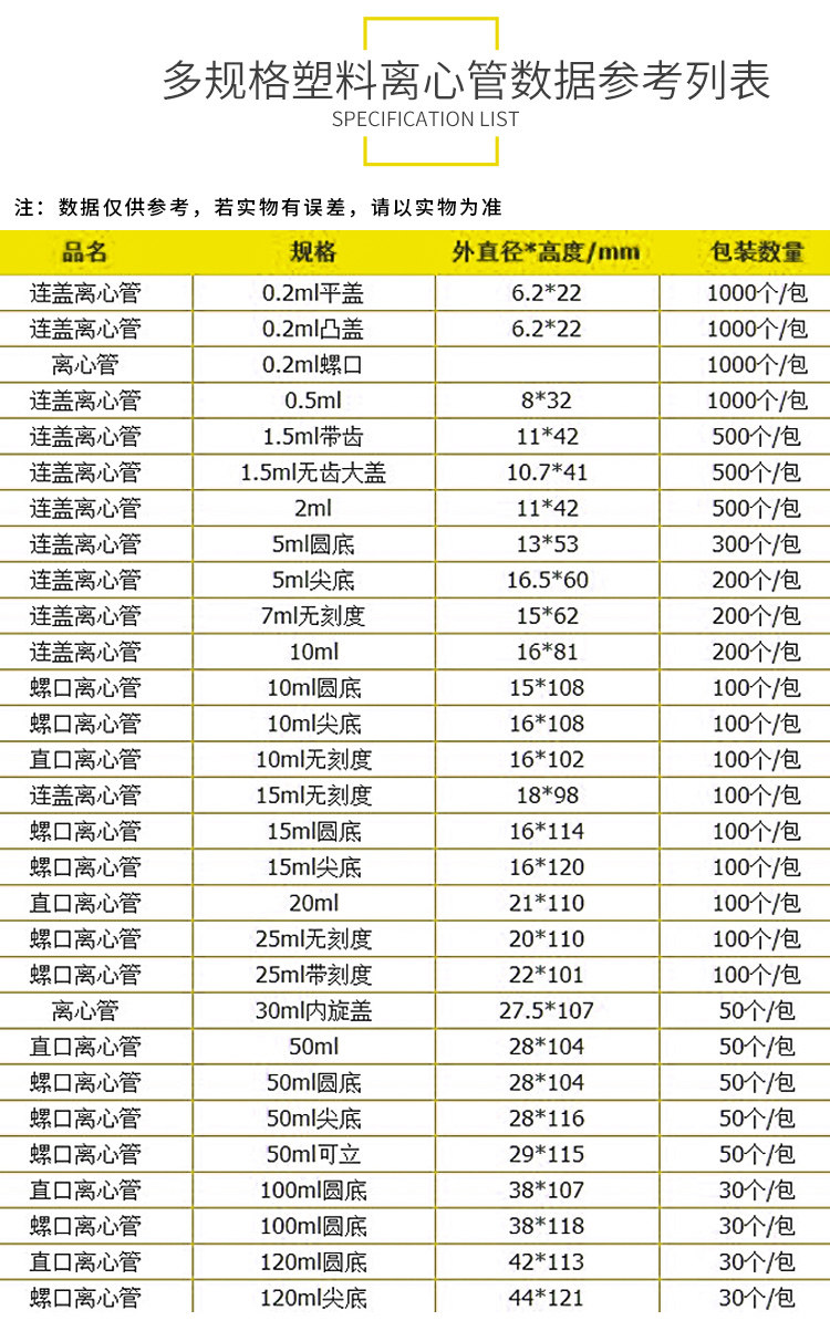 0 2ml pointed bottom flat lid 1000pcs 0 5ml pointed bottom flat lid 1000pcs 1 5ml pointed bottom 500pcs 2ml round bottom 500pcs 5ml round bottom