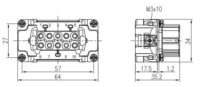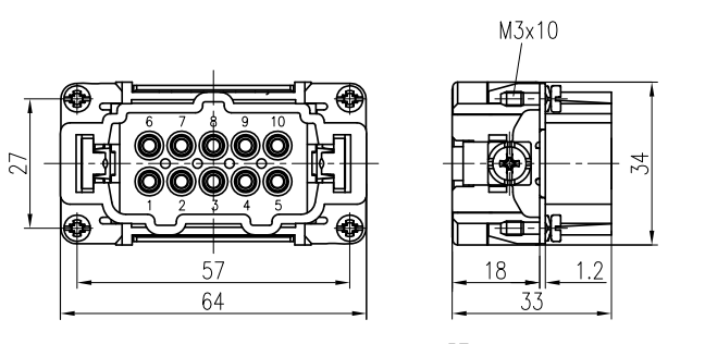 Rectangular heavy-duty connector 10-pin cold-press wiring aviation plug and socket HE-010-MC FC male and female core