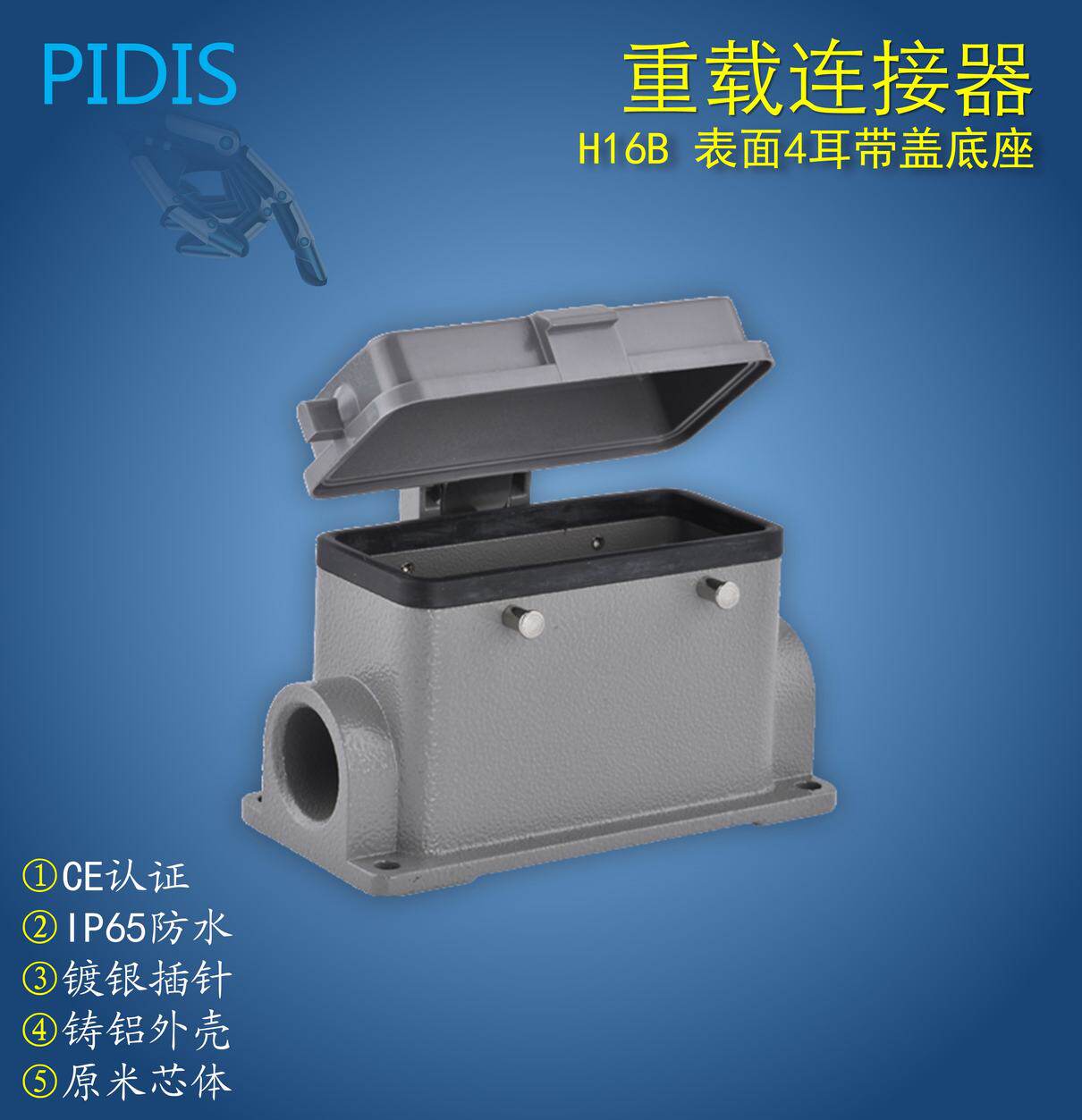Rectangular heavy-duty connector 16-core surface 4-ear buckleless base industrial plug socket H16B-SM-4B