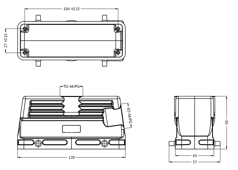 Rectangular Heavy Duty Connector H24B Ejector 4 Ears Upper Shell Industrial Waterproof H24B-TO P-4B-M25