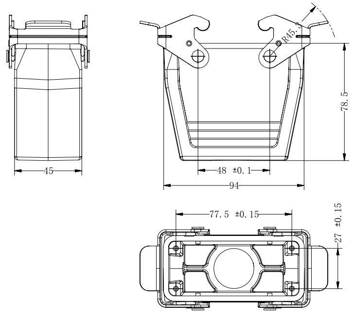 Rectangular Heavy Duty Connector H16B Butt Double Buckle High Structure Base H16B-CTTH-2L-M25