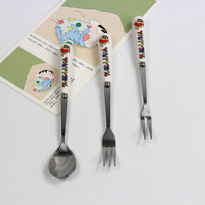 Wax Pen Small New Ceramic Spoon Water Cup Spoon Stainless Steel Spoon Fork Fruit Fork Cake Fork Coffee Spoon Cartoon Cartoon