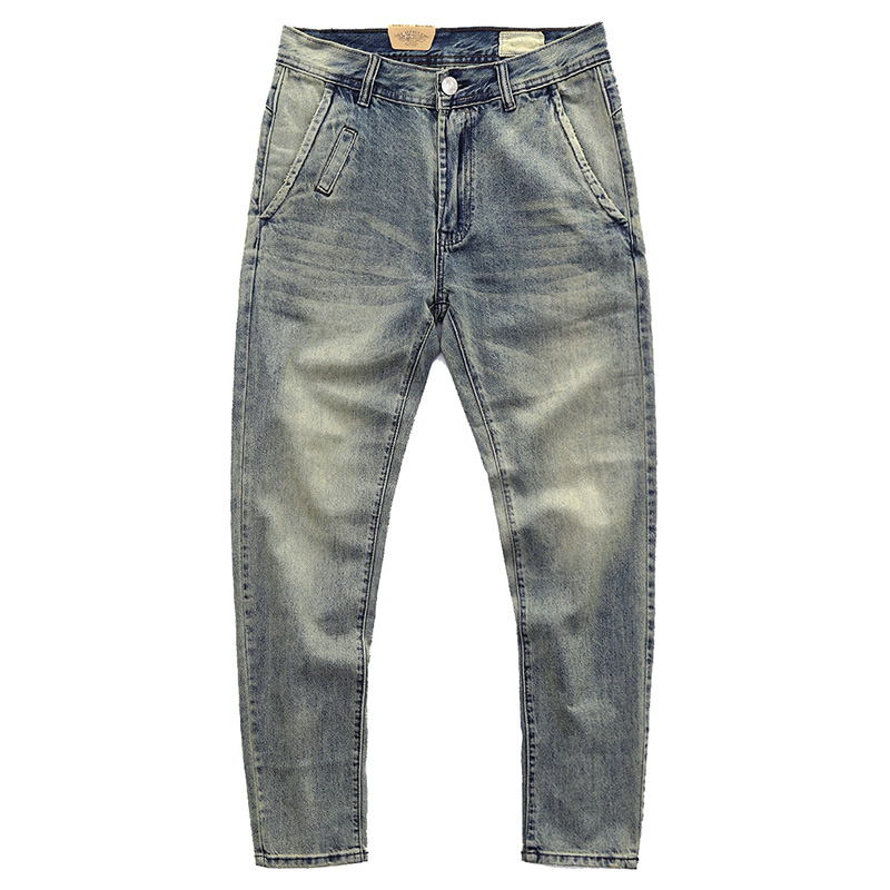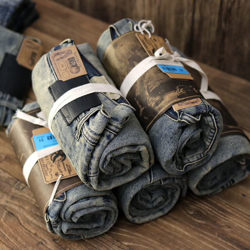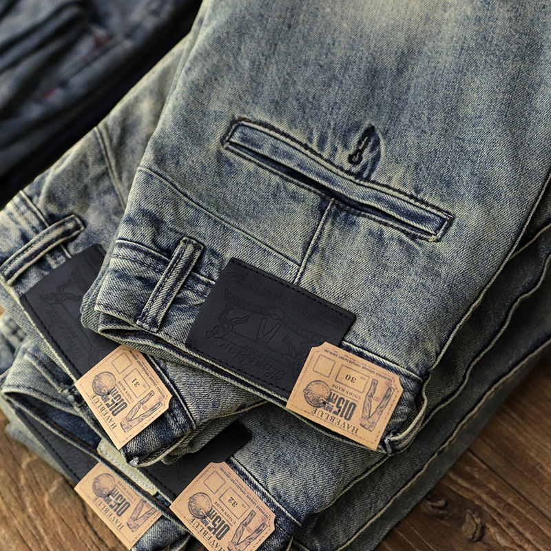 Vintage American Casual Pants Male Light Color Sand Wash as Old Body Small Straight Drum Retro Washed Jeans Man
