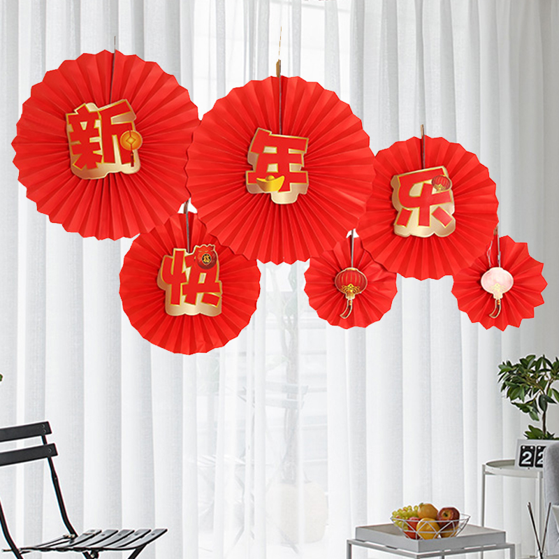 Happy New Year-Paper Fan Flower Set (6 pcs) Red Series-Paper Fan Flower Set (6 pcs) Pink Series-Paper Fan Flower Set (6 pcs) Red and Blue Series-Paper Fan Flower Set (6 pcs)