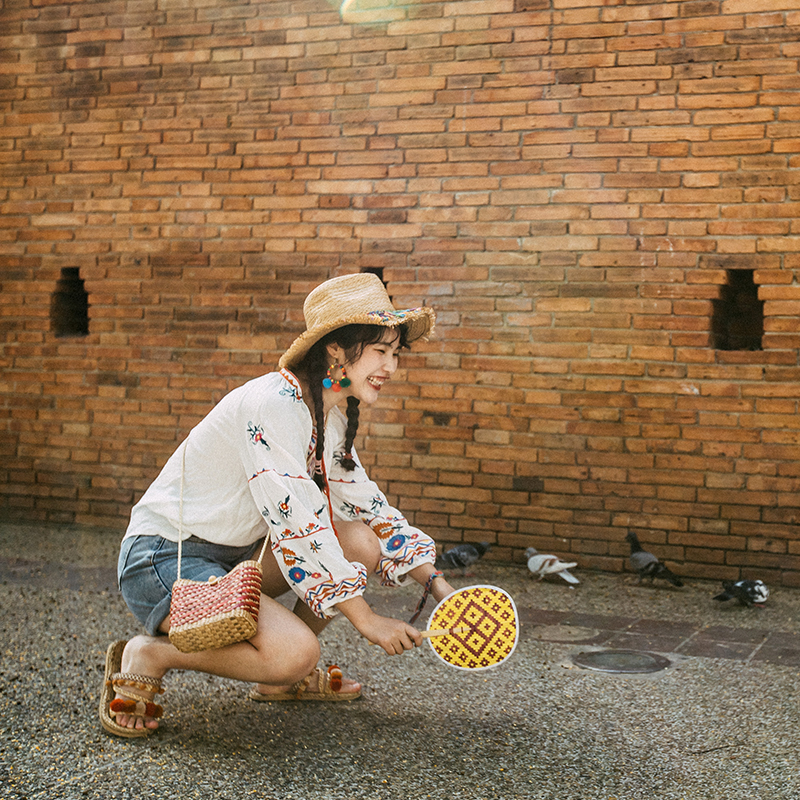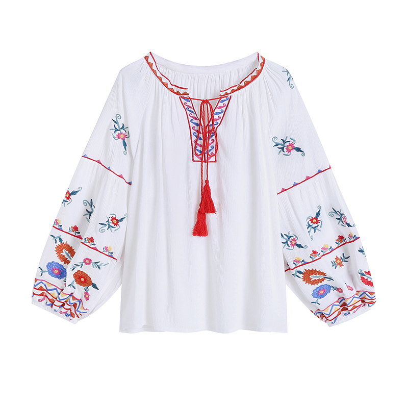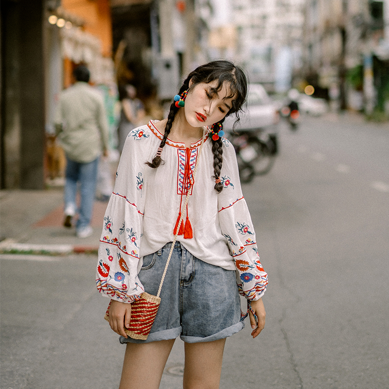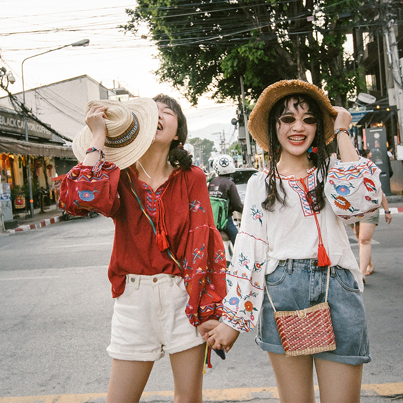 Thai Holiday Travel Clothes Out of BFF Dress West Double Version Na National Wind Long Sleeve Shirt Loose Embroidered Blouse