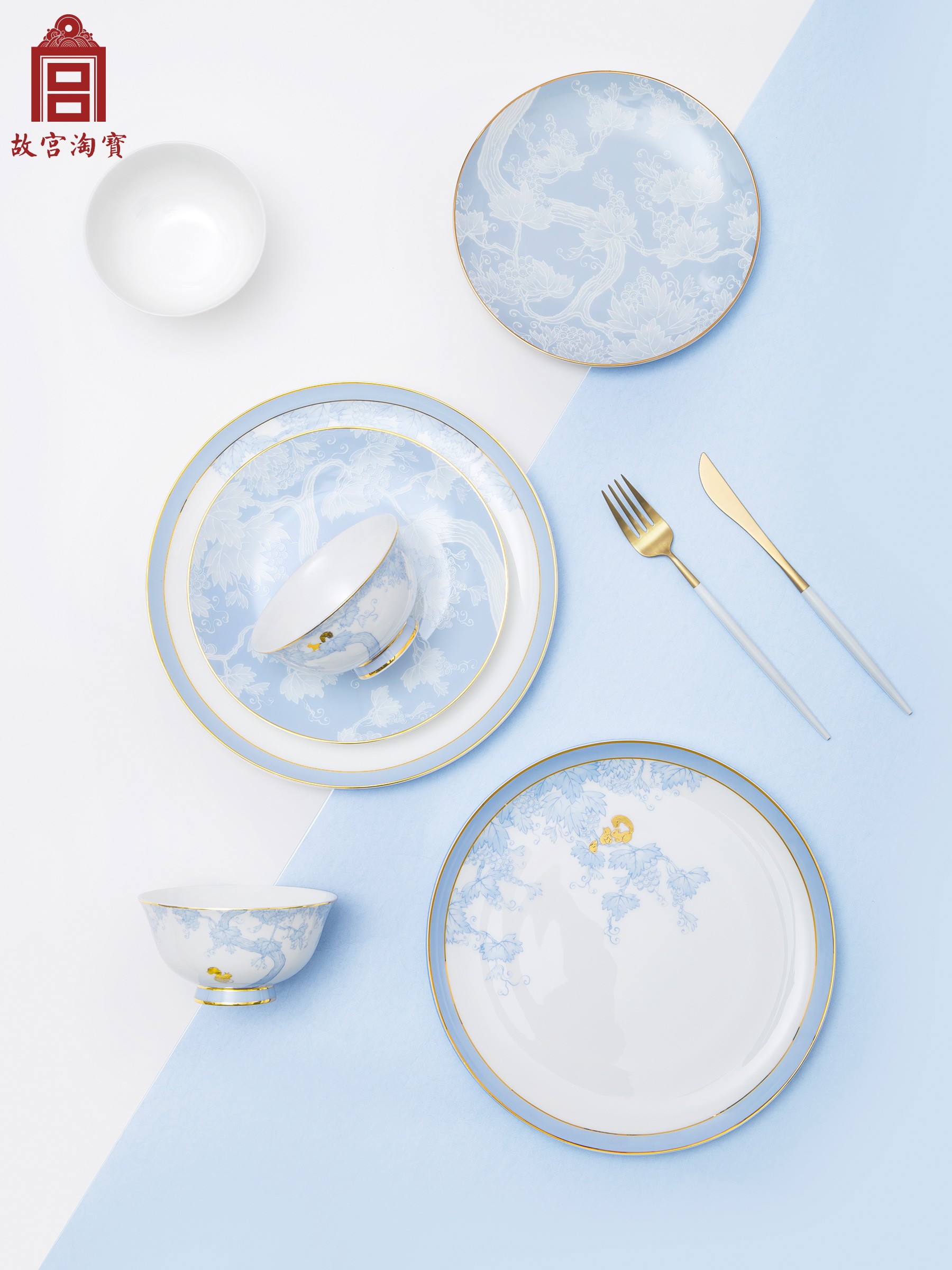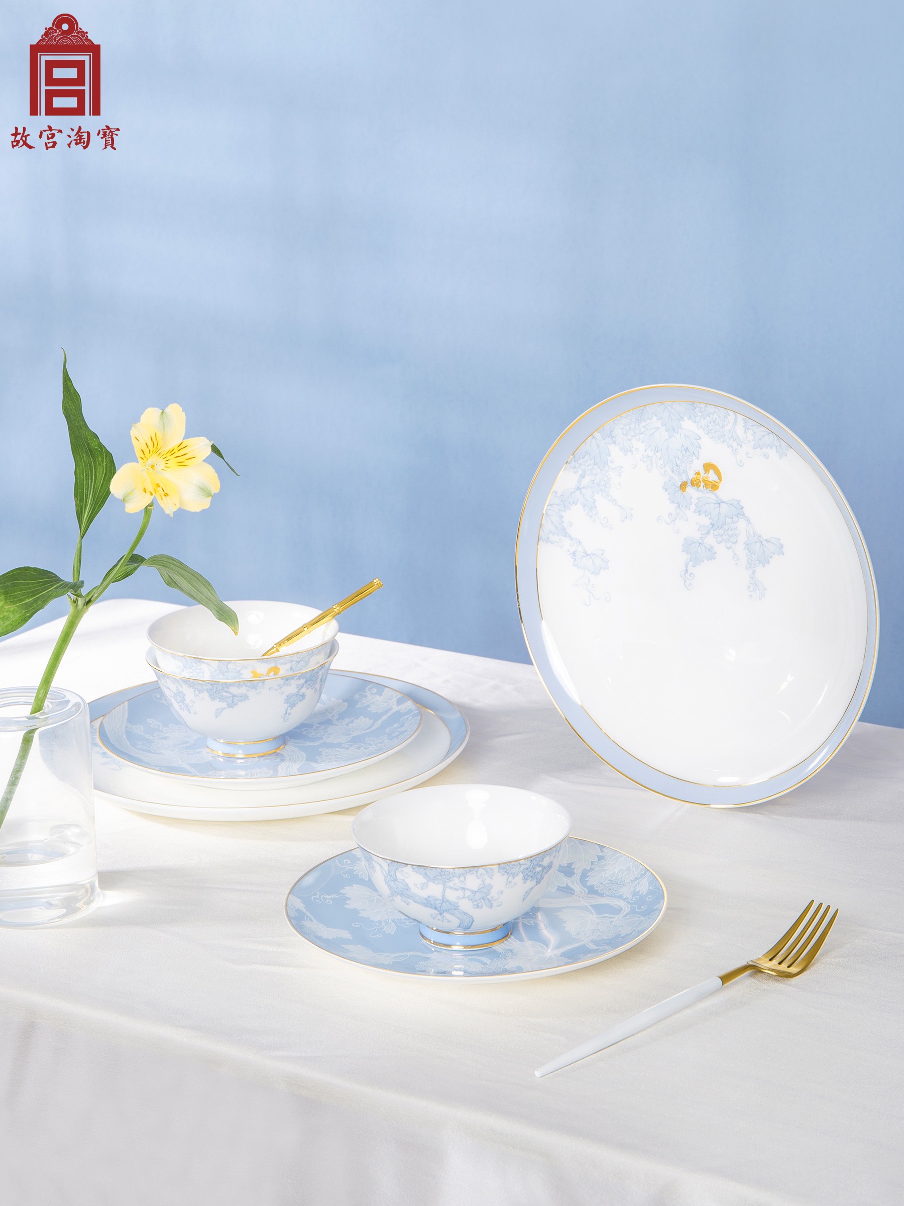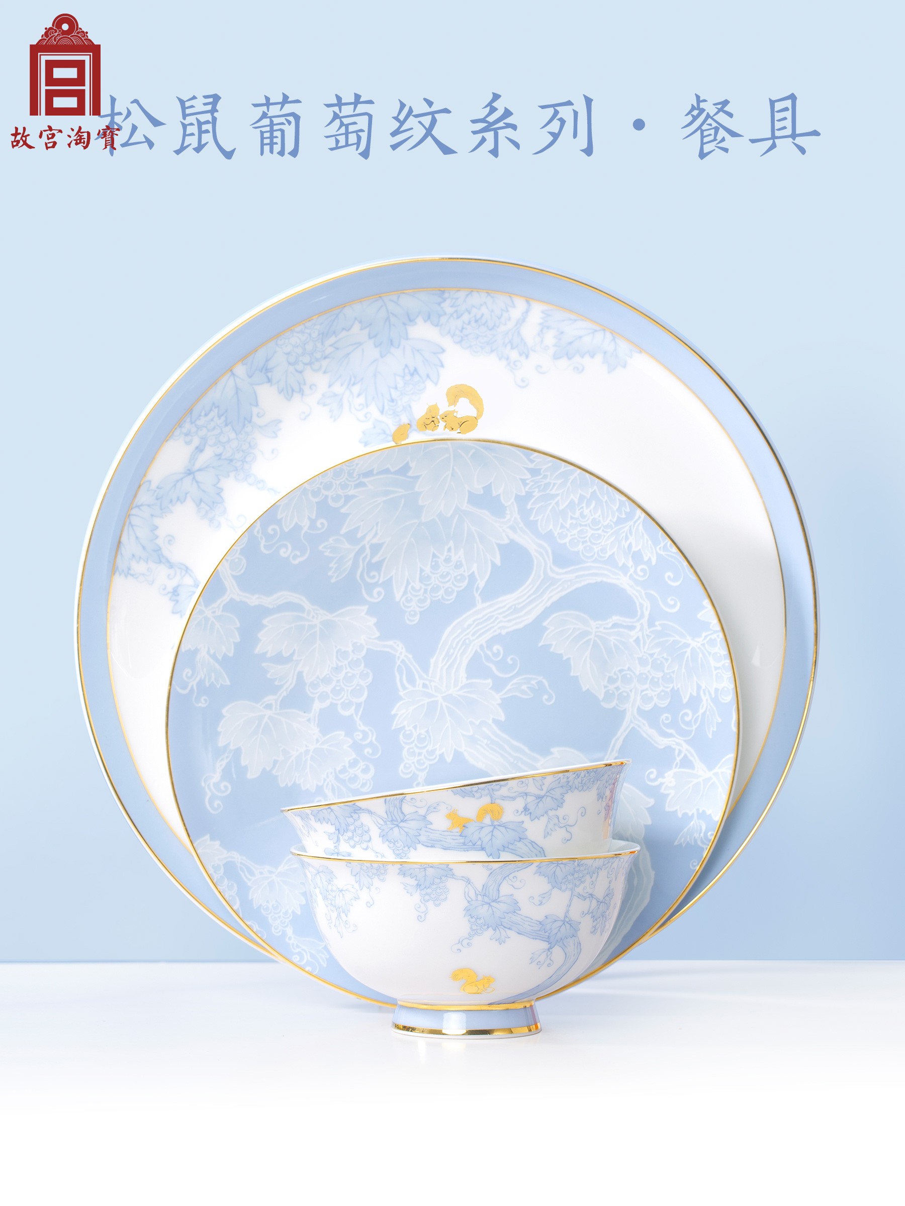 Forbidden City Taobao | Squirrel grape pattern dish table tableware set bone porcelain bowl to move birthday new wedding gift