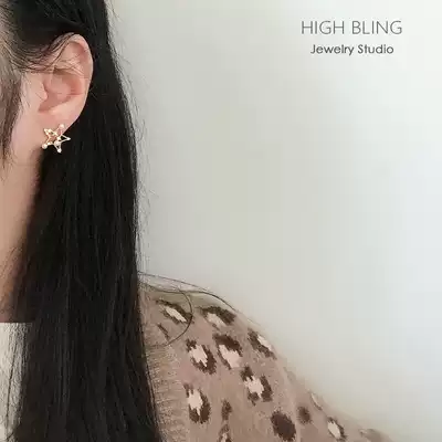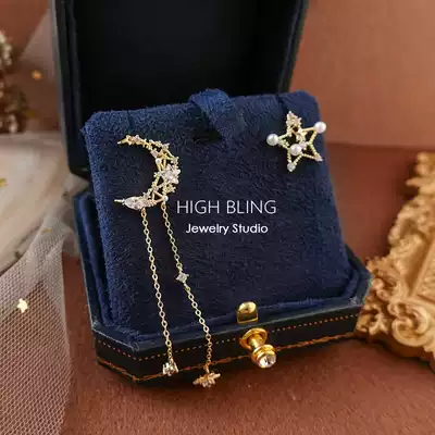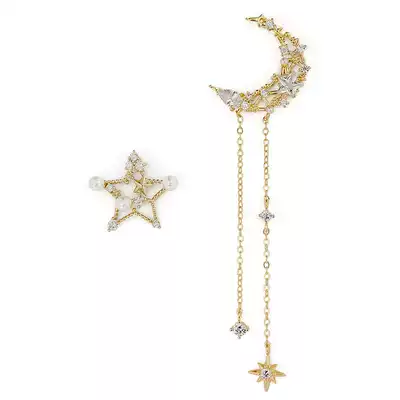 HighBling Zircon star and moon tassel ear earrings s925 silver needle earrings female models without pierced ears mosquito coil ear clip