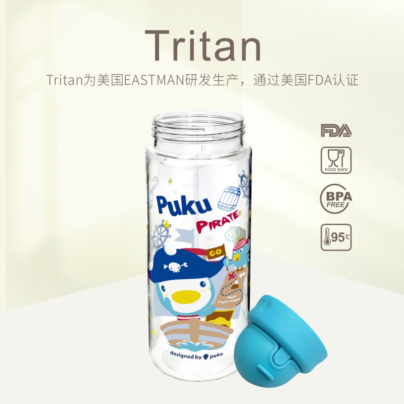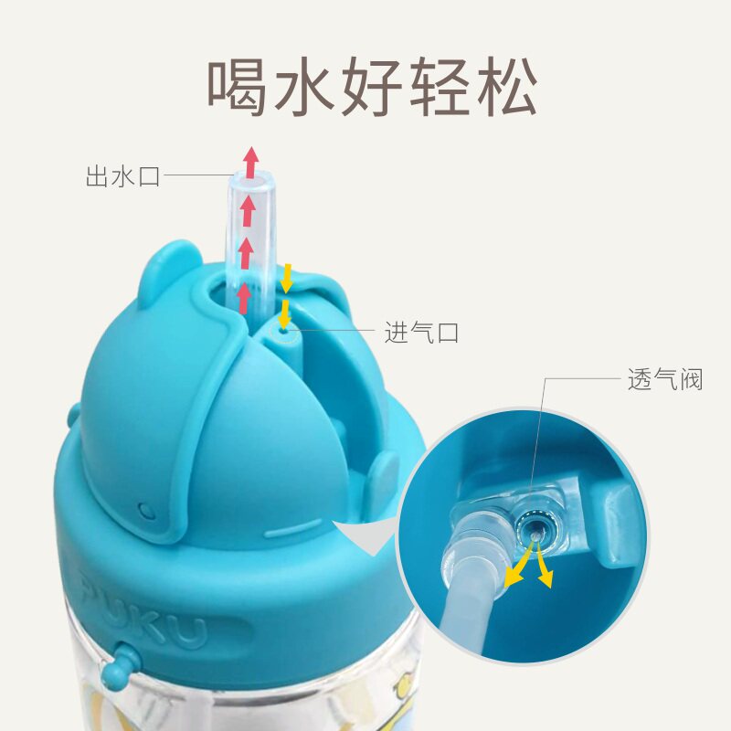PUKU children's straw water cup pupils cartoon cute outdoor sports portable anti-fall scale TRITAN kettle