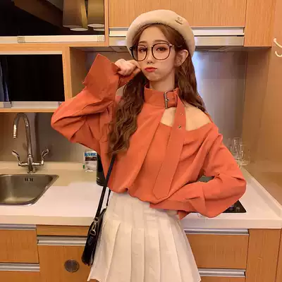 Early autumn design sense niche strapless long sleeve sexy shirt Women autumn 2021 New early autumn shirt top