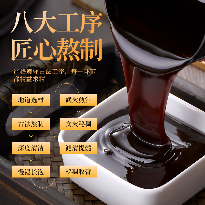 Honey, Red dates, angelica, Cinnamon, Dried Ginger, Peach Kernel, Bellflower, poria, Licorice, Ejiao, Purified Water