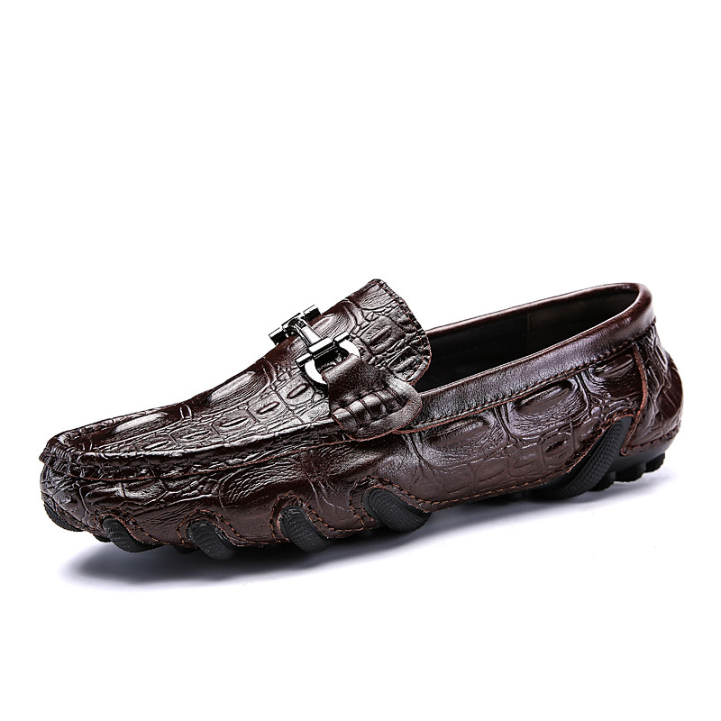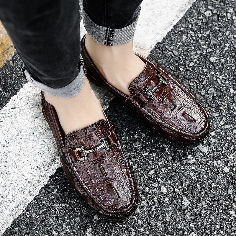 2022 Summer new large size beans Beans Shoes Man Genuine Leather Breathable Sloth Shoes Han Prints FASHION BUSINESS SHOES CROCODILE TATTOO