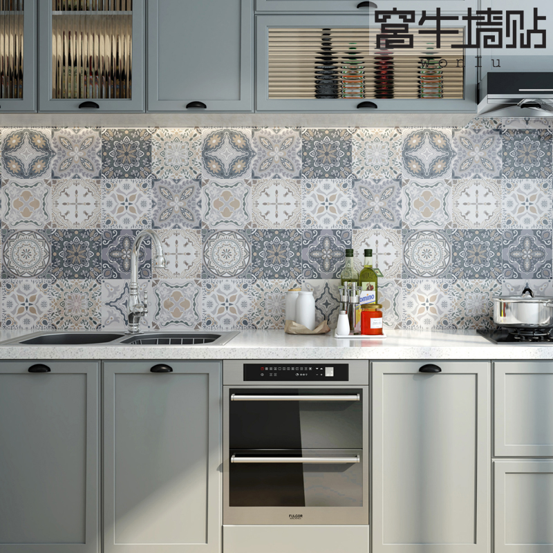 Wall sticker wallpaper Self-adhesive Nordic style decorative wall sticker Kitchen oil-proof waterproof moisture-proof powder room tile sticker