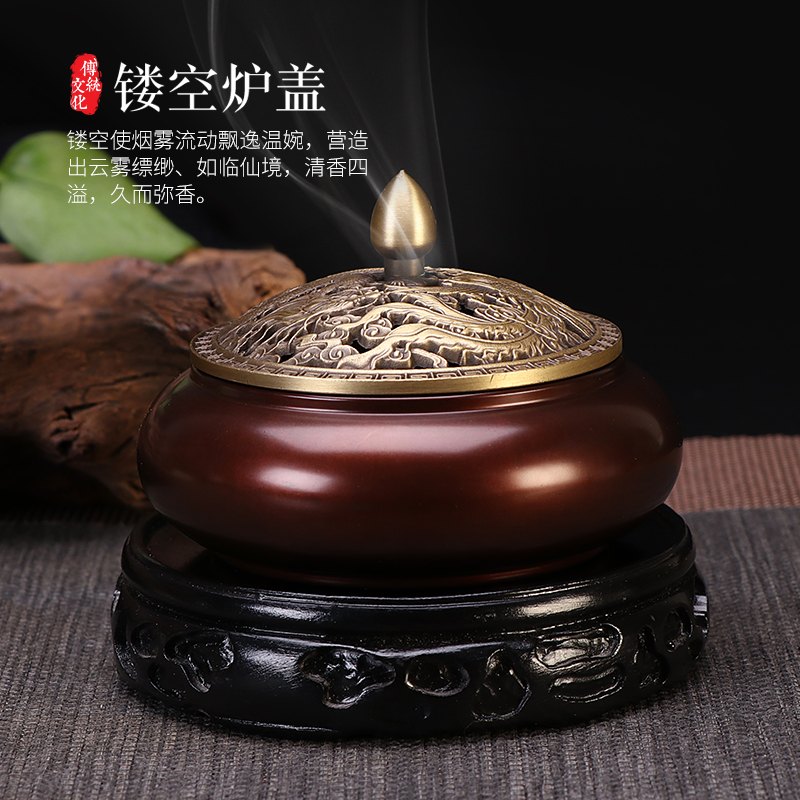 Incense stove pure copper ring incense stove Home Indoor Xuan Furnace Large sunken incense Incense Stove Imitation Ancient Sandalwood Stove Creative Pendulum
