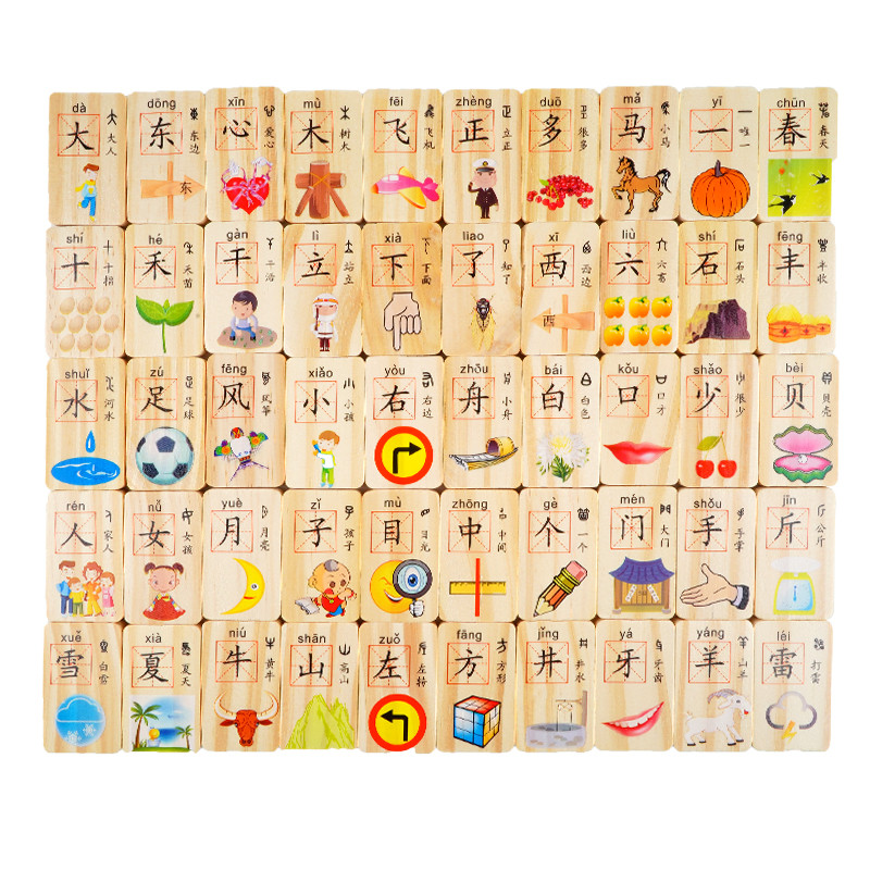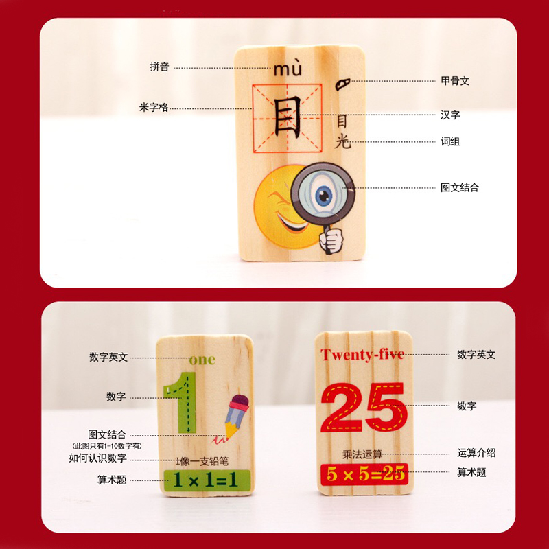 Wooden pills early teaching literacy domino bone wood block children Yi brain boys girls and girls wooden toys