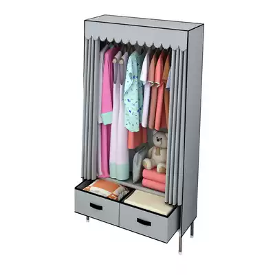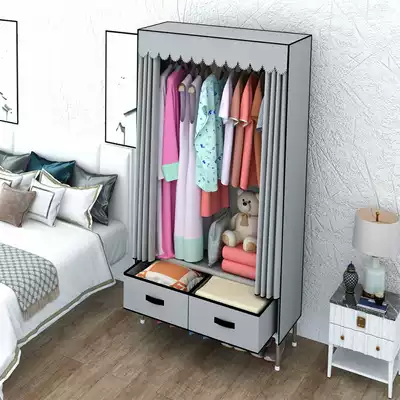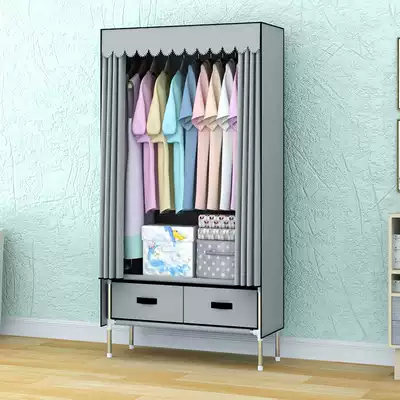 Simple cloth wardrobe without zippered curtain steel pipe thickening reinforced household double fabric full steel frame hanging clothes folding