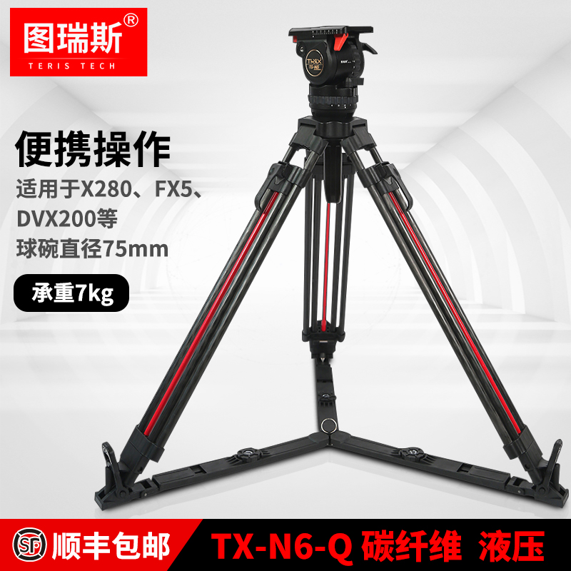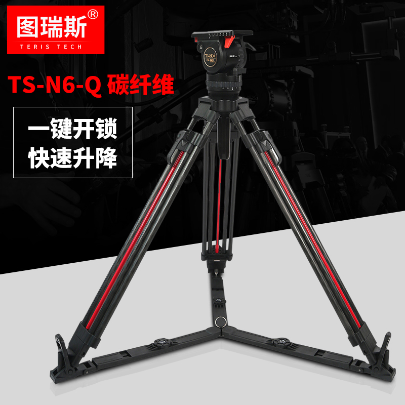 Turis N6T one key unlock hydraulic ptz Carbon fiber aluminum tripod Monocular camera shake sound quick hand short video live interview Professional portable tripod send portable bag