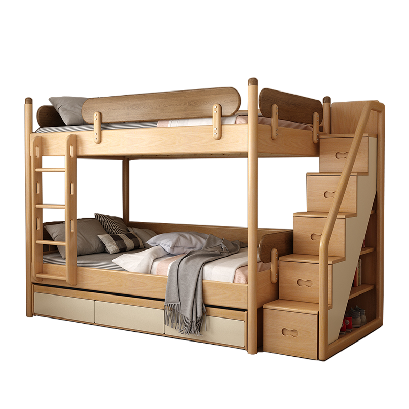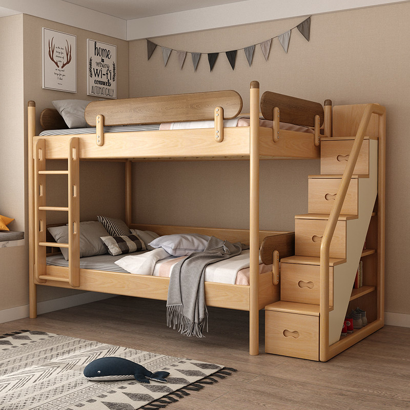 Dumb Nordic simple multi-functional adult full solid wood upper and lower bunk beds high box mother bed parallel high and low beds