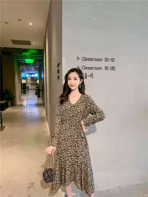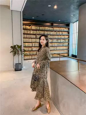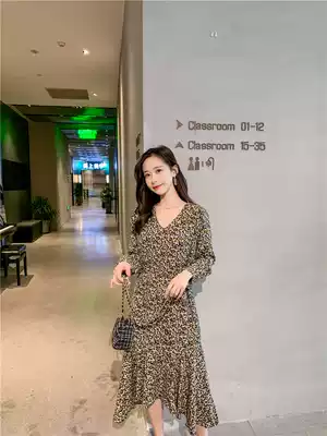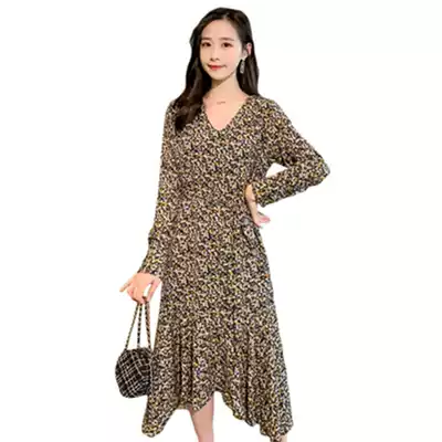 Western style maternity spring dress long sleeve floral chiffon dress medium and long version large size slim fish tail skirt bottom skirt