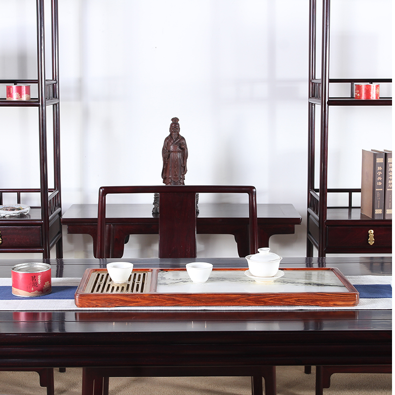 Large Red Acid Branches Inlaid Marble Dry Tea Trays Home Red Wood Dry Foam Bench Solid Wood Minima Strip Kung Fu Tea Furniture