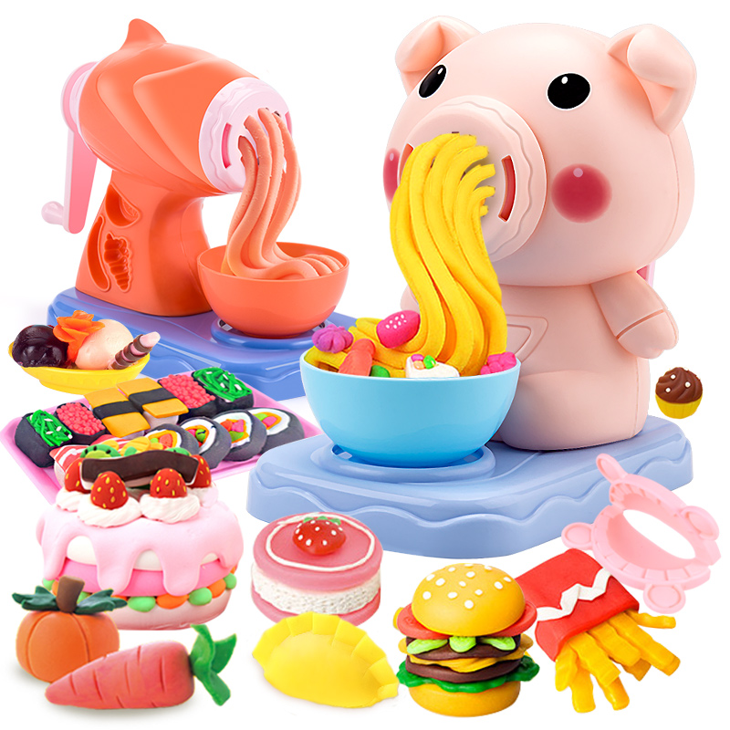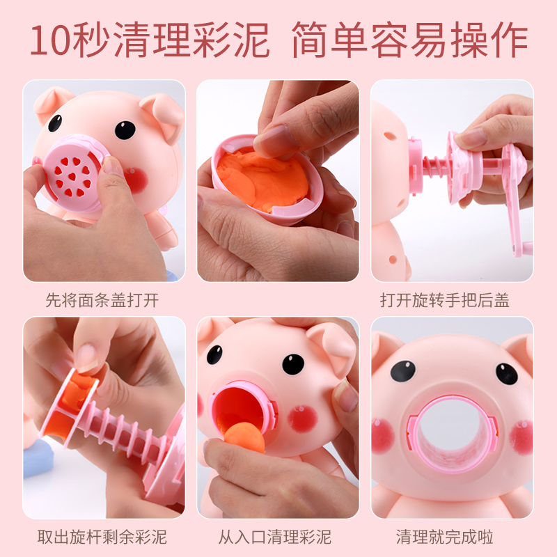 Children piglet noodle machine toy non-toxic rubber color mud mold tool set handmade food grade clay girl